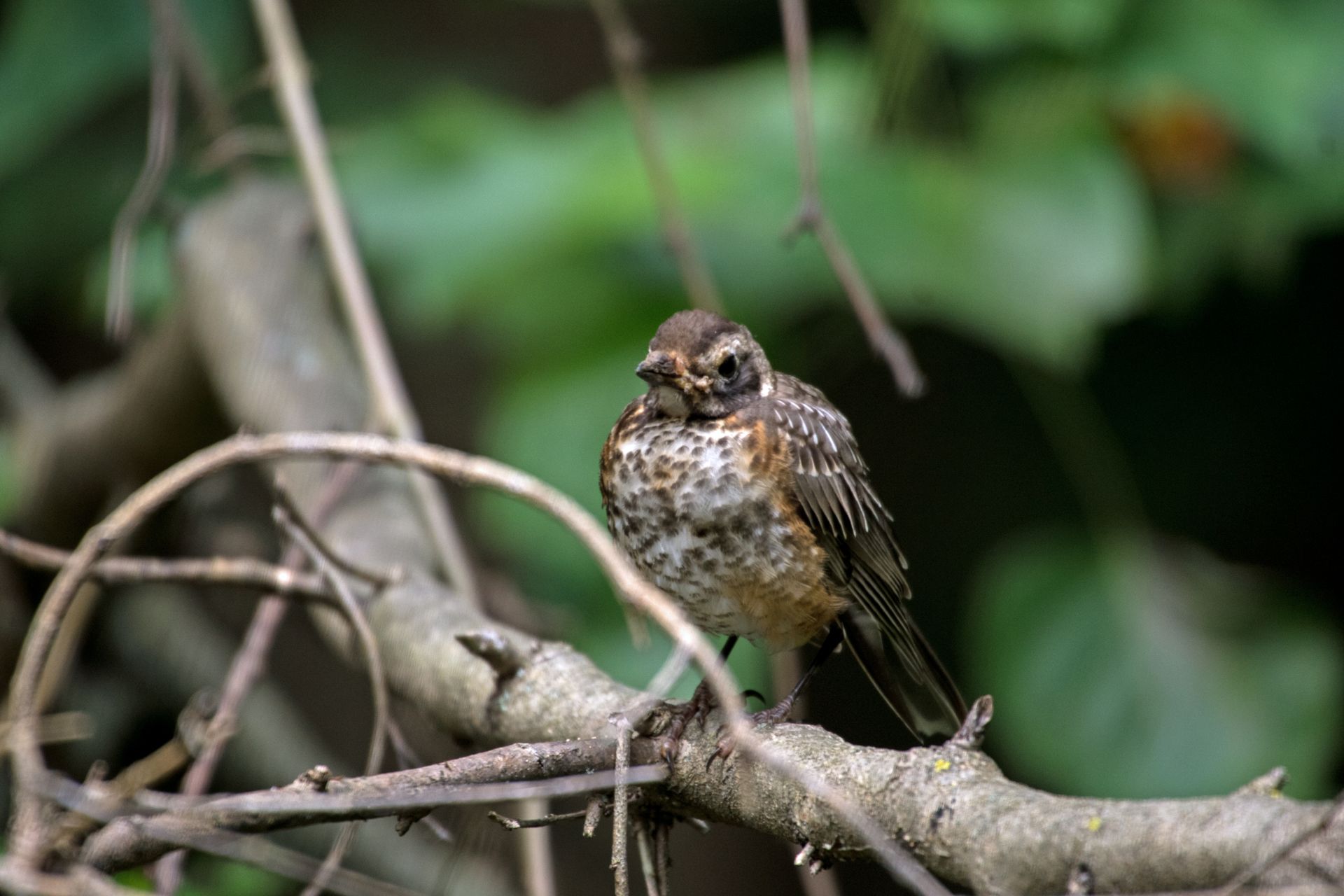 Image (left): A juvenile robin on a branch courtesy of Andrew Hazen.